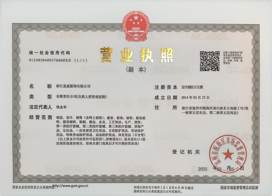 企業(yè)注冊 資 本金增資至5800萬,升級為浙江意威服飾有限公司。開啟浙江意威發(fā)展第二個三年計劃。